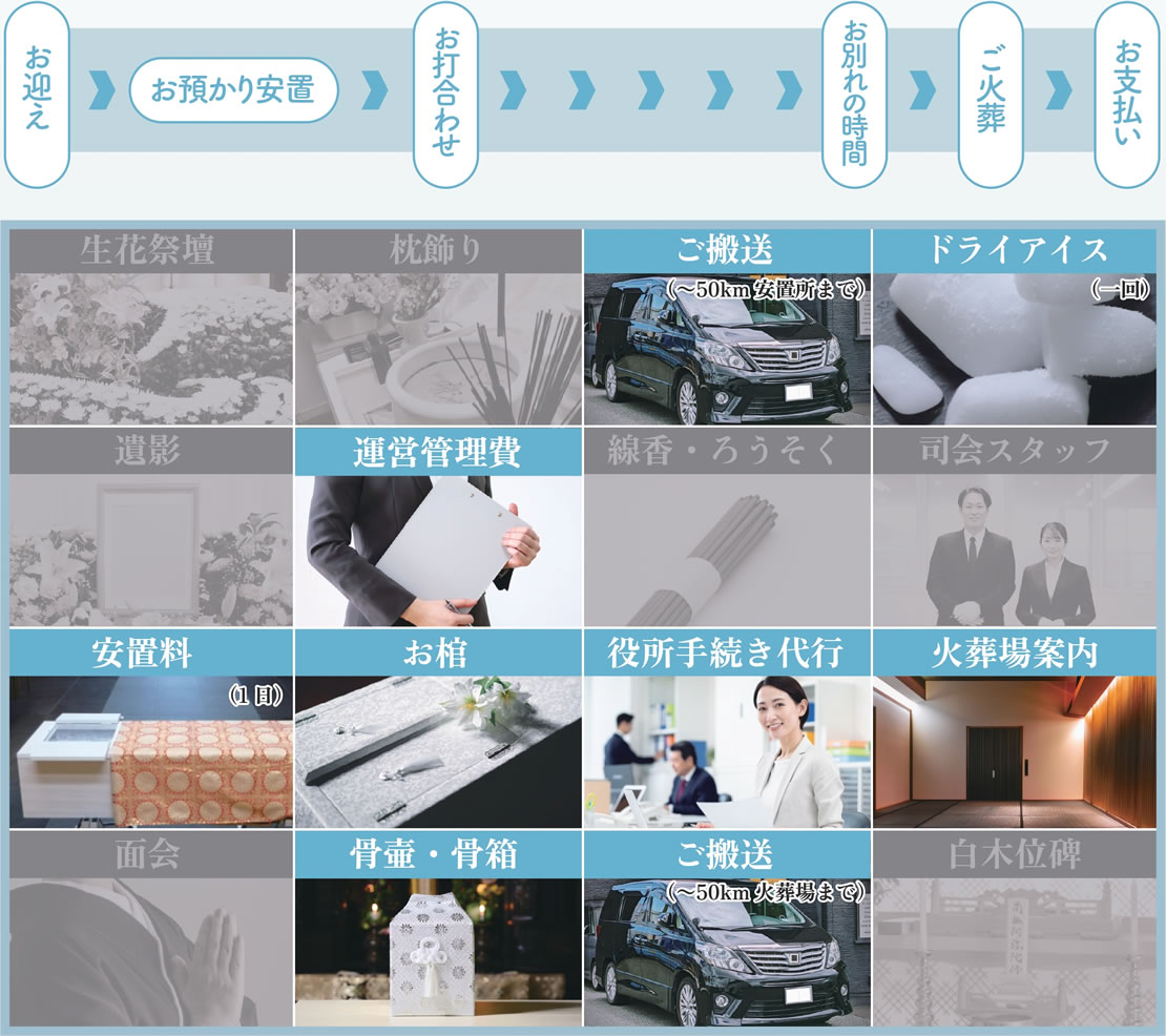 ドライアイス超過分/安置日数の超過分/飲食代お香典返し/祭壇・棺・お骨壺のグレードアップ