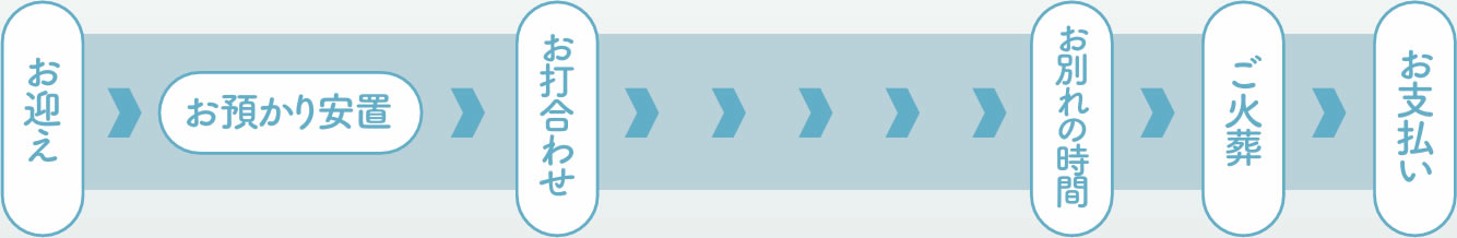 安置施設にてお預かり期間、ご面会が可能です。火葬までの間、ご自宅に安置も可能です。